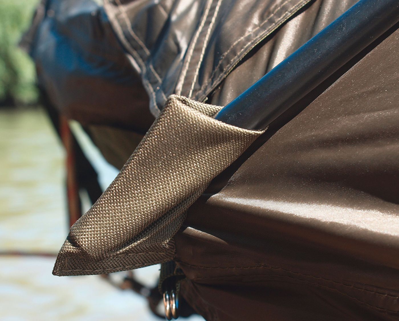 Durch integrierte Klettverschlusstaschen kann die Tür zusätzlich beschwert werden – kein Flattern bei starkem Wind.