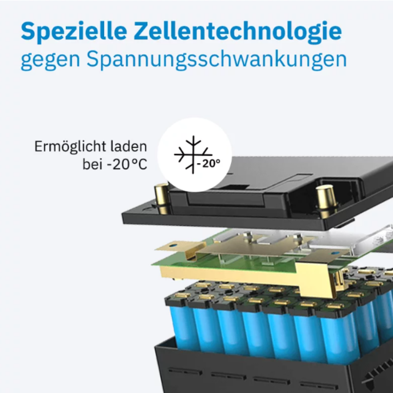 Dank hochwertiger LiFePO₄-Zellen und eines intelligenten Batteriemanagementsystems (BMS) arbeitet die LC Dual auch bei extremen Temperaturen zuverlässig – sogar ohne integrierte Heizung. Das reduziert den Eigenverbrauch beim Laden und macht sie besonders effizient im Wintereinsatz.