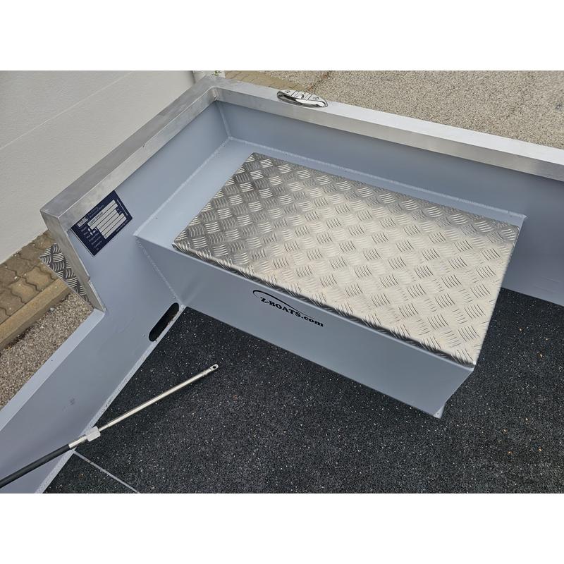 Die Plattformen am Heck sind eine ideale Erweiterung und können für das leichte Ein-/Aussteigen, sowie für Badeleiter und vieles mehr genutzt werden. Die Aufbewahrungskisten links und rechts vom Boot bieten nicht nur viel Platz, sondern auch Ablageflächen und Möglichkeiten für die Montage von Stühlen.