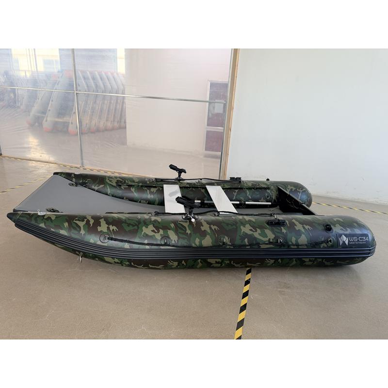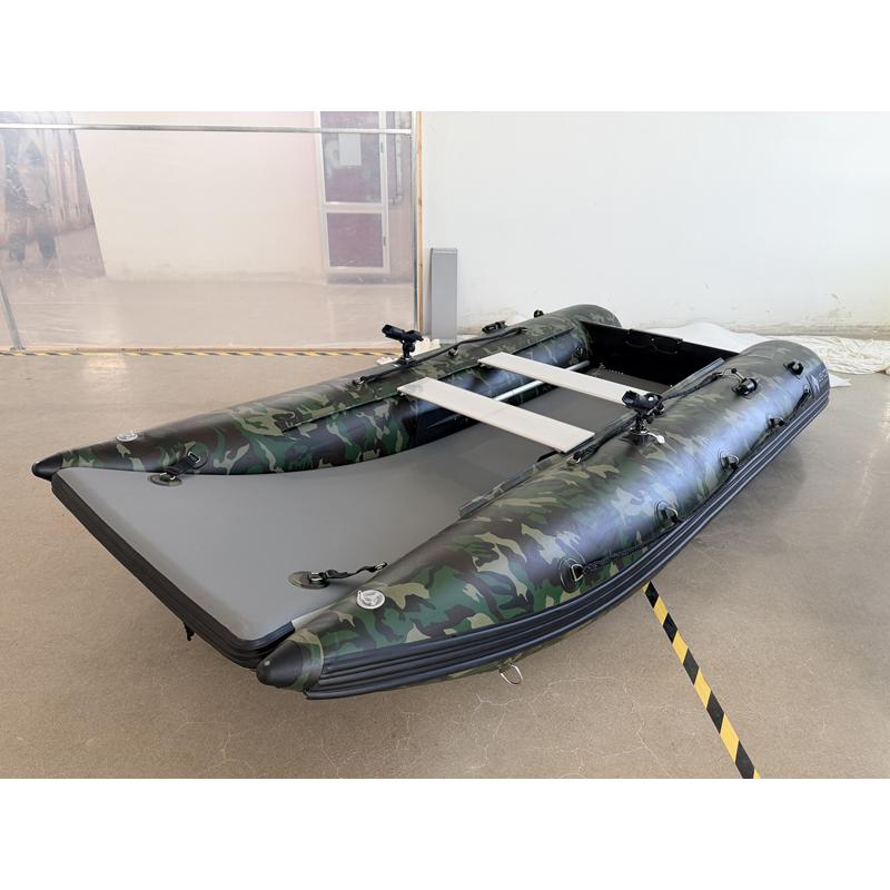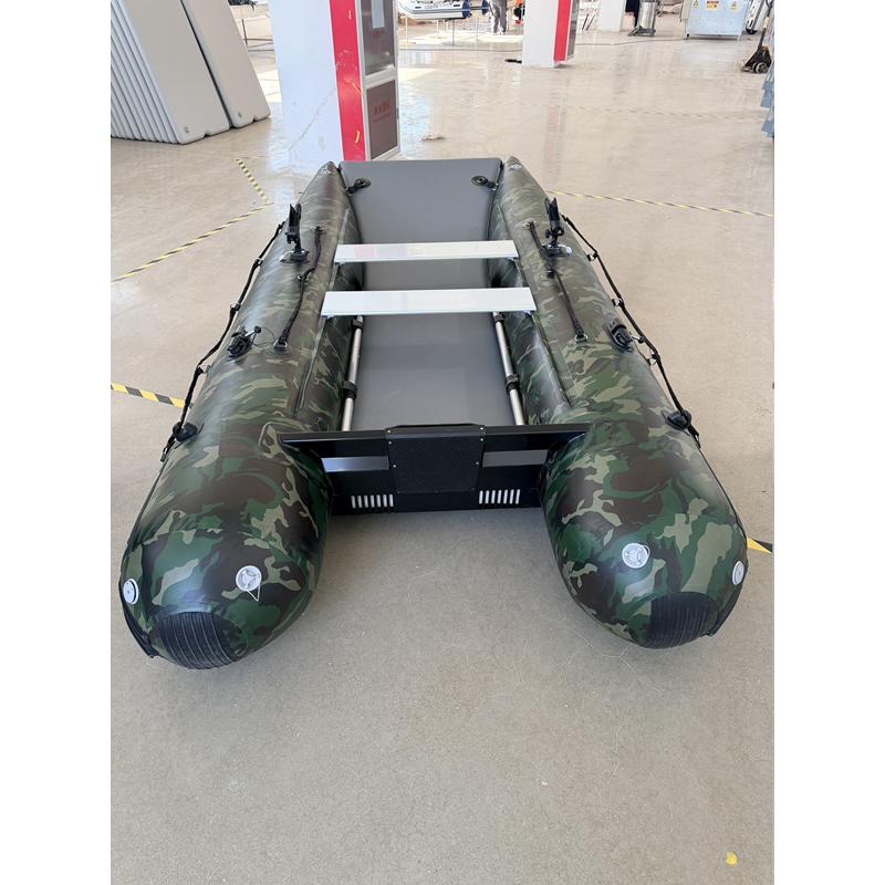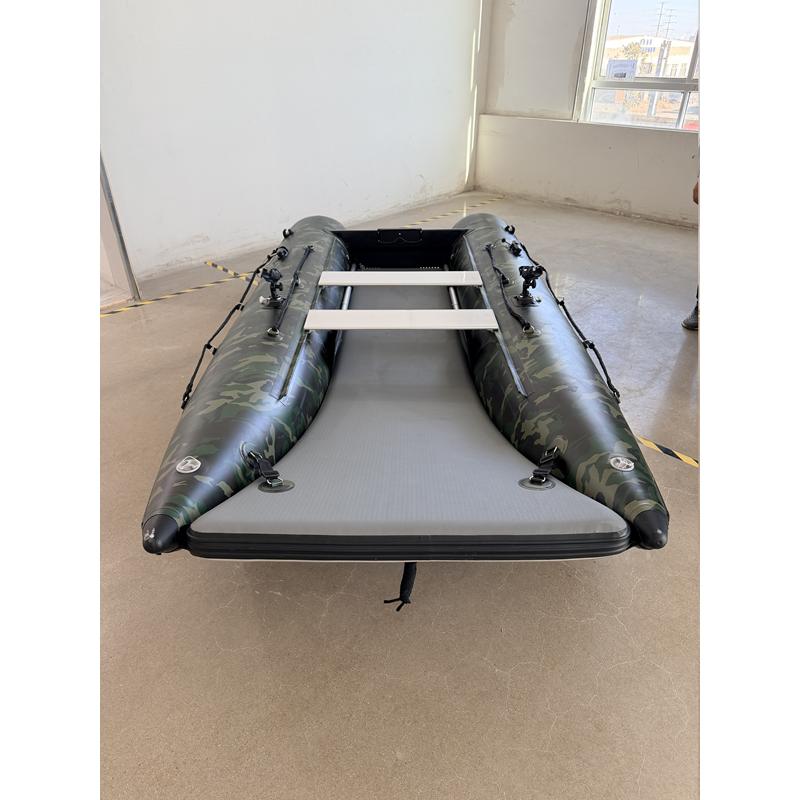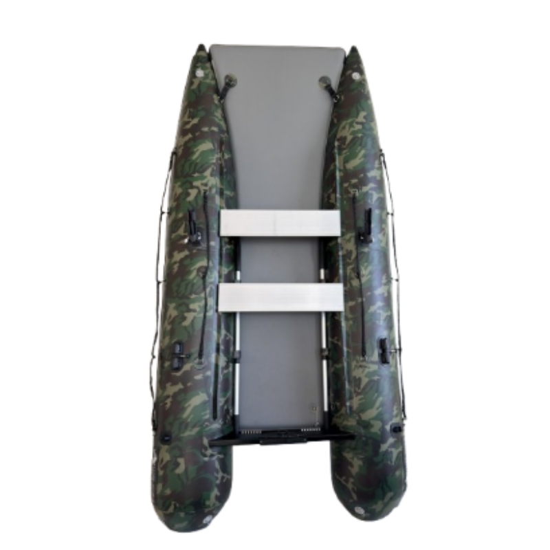 Das einzigartige Design bietet einen offenen Bug und viel Raum; den größten Innenraum auf dem Markt und ein Schlauchboot, das sowohl zu Land als auch zu Wasser extrem einfach zu betreten und zu verlassen ist. Ein Aluminium Transom mit integrierter Selbstlenzung. Der Katamaran-Rumpf bietet Stabilität, frühes Gleiten und ist ein Schlauchboot mit hohem Spaßfaktor, der Liebling der Kinder.